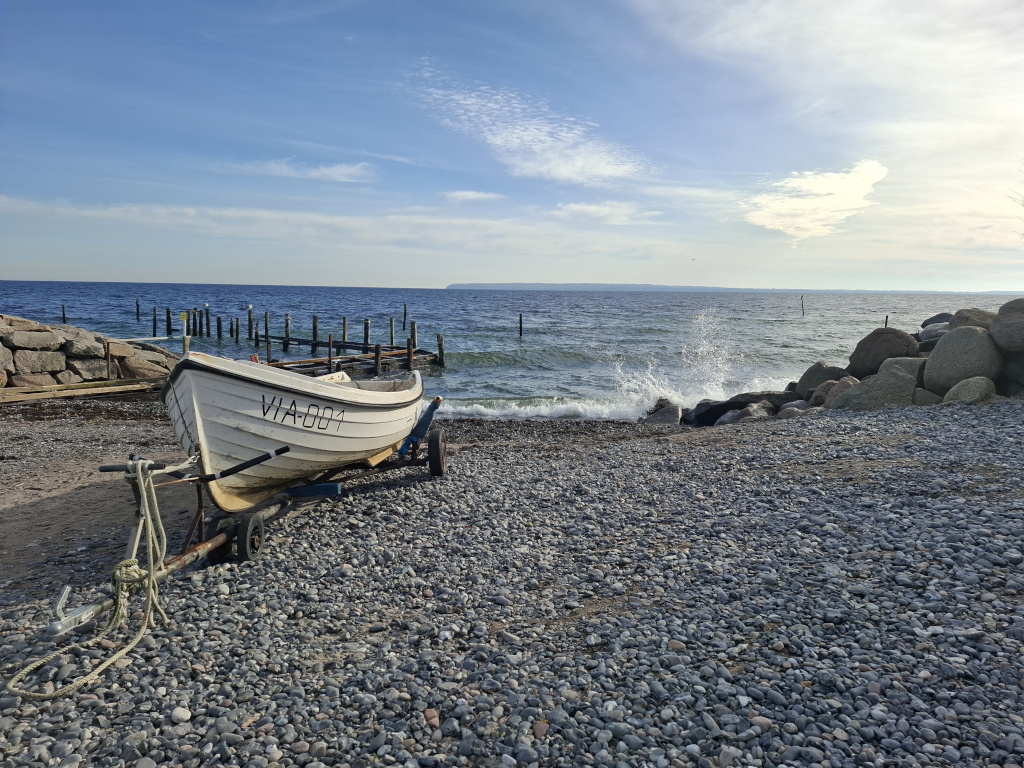 Eine letzte Biegung und mein Blick erfasste das erste Wasser. Ein Fischerboot lag am Strand. Sicher war es am frühen Morgen schon unterwegs und durfte sich nun eine Pause gönnen. Wellen brachen sich an kleinen und großen Felsen. Begleitet von einem Rauschen, dass mein Herz mit Freude erfüllte. Manchmal braucht es nur so wenig.