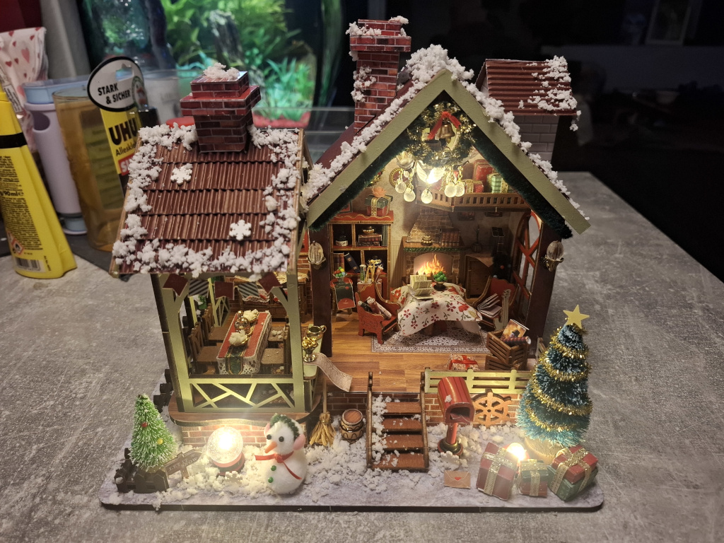 Allerdings hat das damit zu tun, dass ich 2 Haut-Ops hatte und mir nicht wirklich nach wegfahren war. Somit hab ich zu Hause ein bisschen gebastelt, mir die Finger verklebt und kann mich nun an einem neuen Häuschen in unserer Wohnung erfreuen. Ist ja auch mal schön.