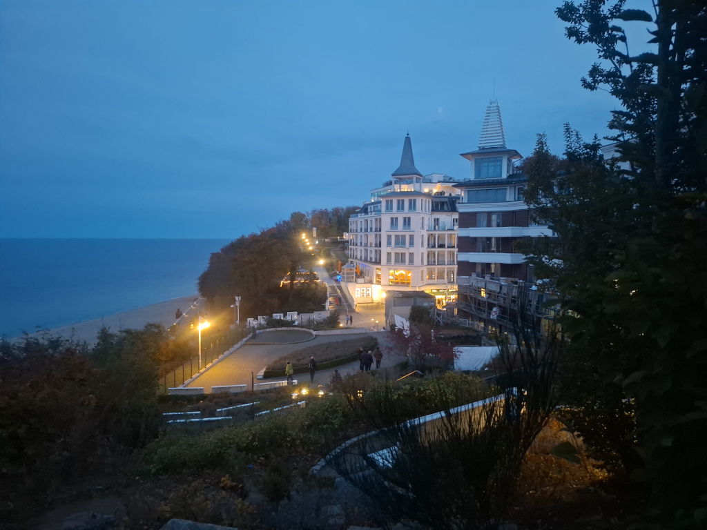 Und da wir schon dabei waren, sind wir auch noch zum Seebad Binz gefahren. Bei unserer Ankunft hatte der Tag sich fast verabschiedet und daher entschieden wir uns nur für einen kurzen Rundgang oberhalb der Dühne. Aber: alles richtig gemacht! Was für ein phantastischer Ausblick!